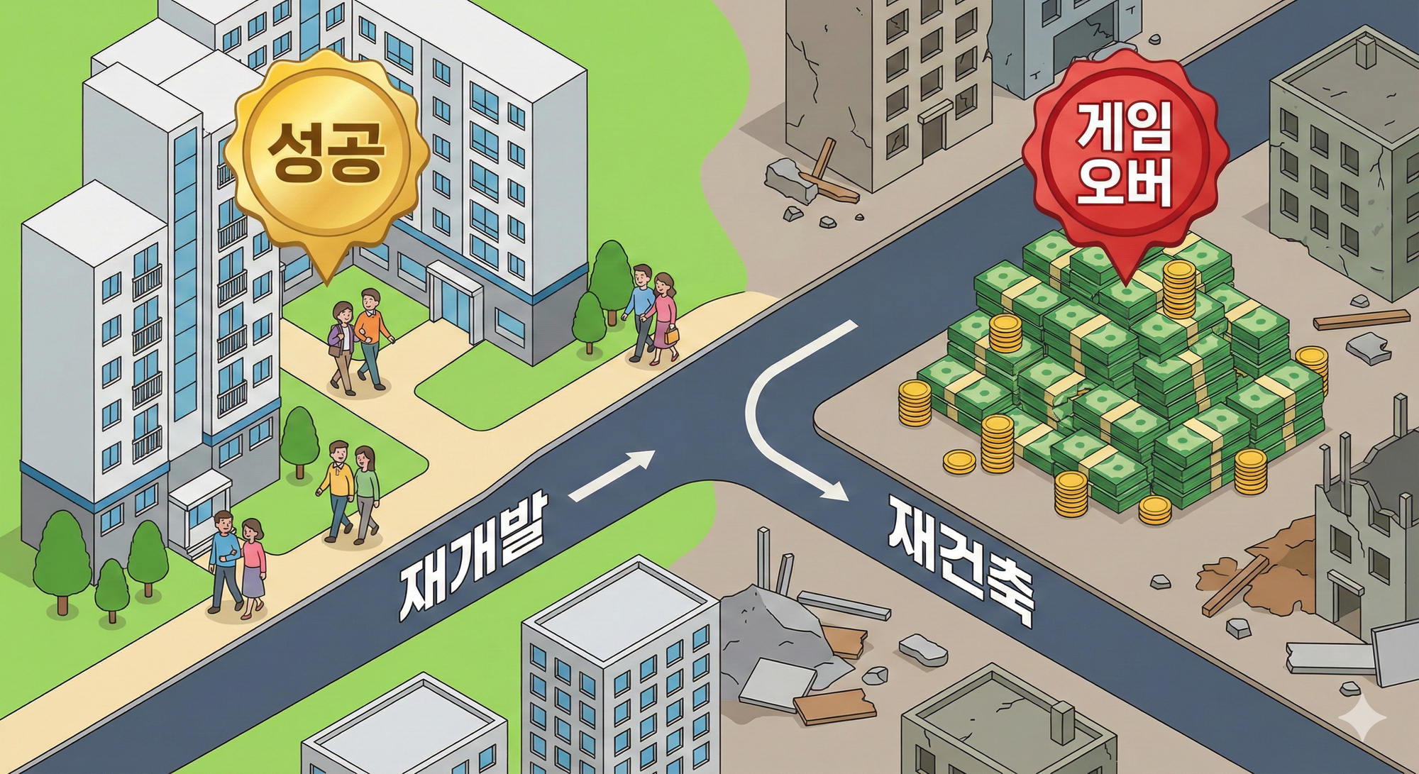 이 질문을 하신 대표님, 혹시 그 땅이 '재개발' 구역인가요, '재건축' 구역인가요?