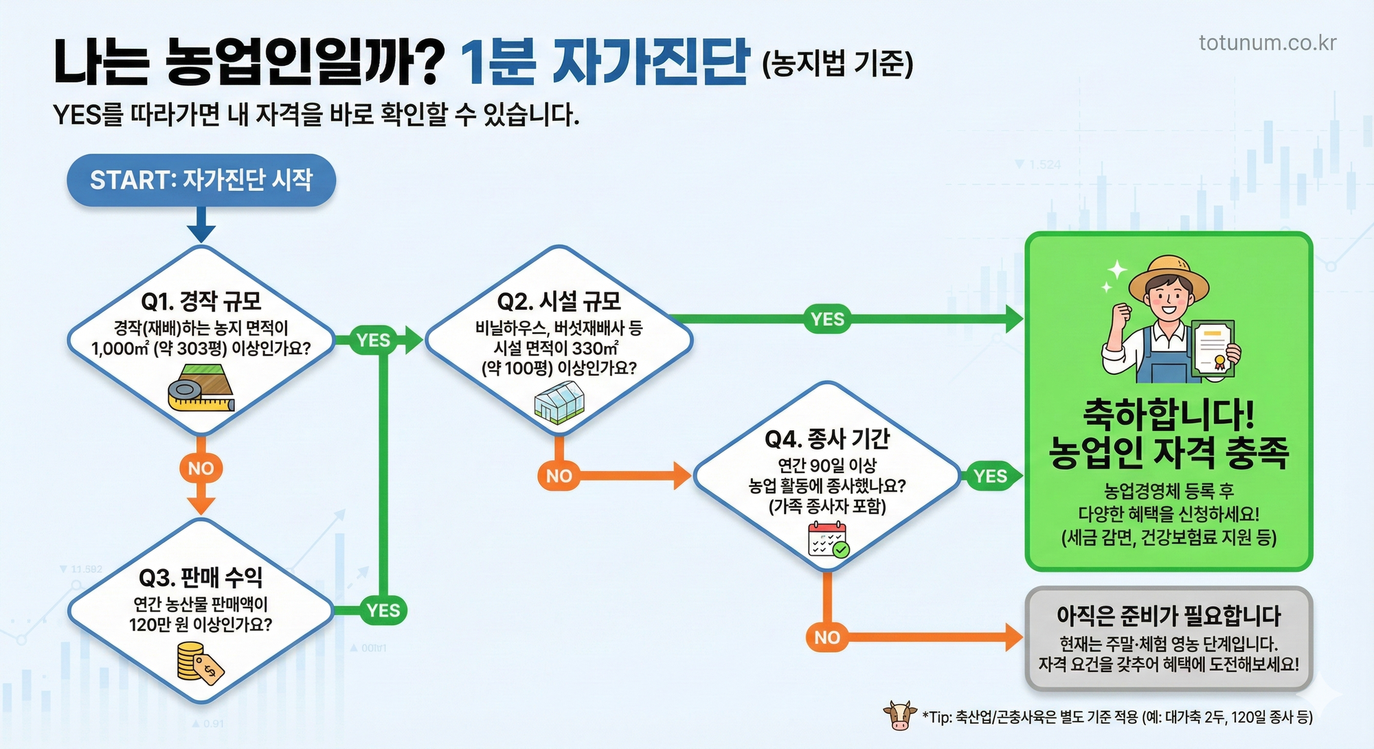 Q1. 농지법상 농업인이 되기 위한 기본 요건은 무엇인가요?
