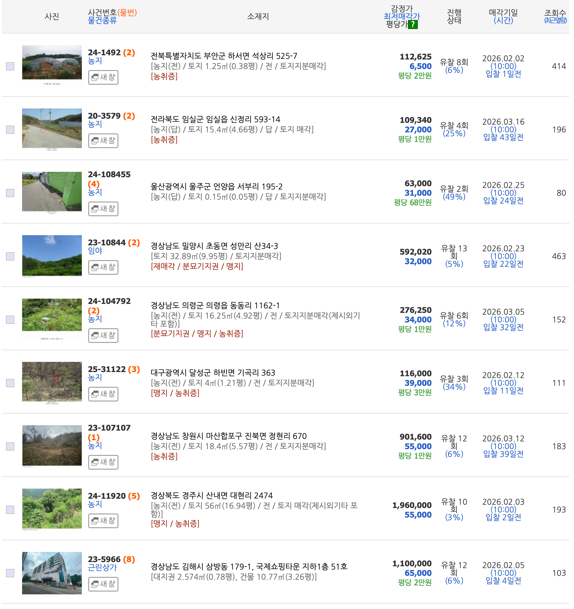 토지가치가 얼마 되지 않아도 관계 없습니다. 1백만원 미만의 매물도 넘쳐납니다.